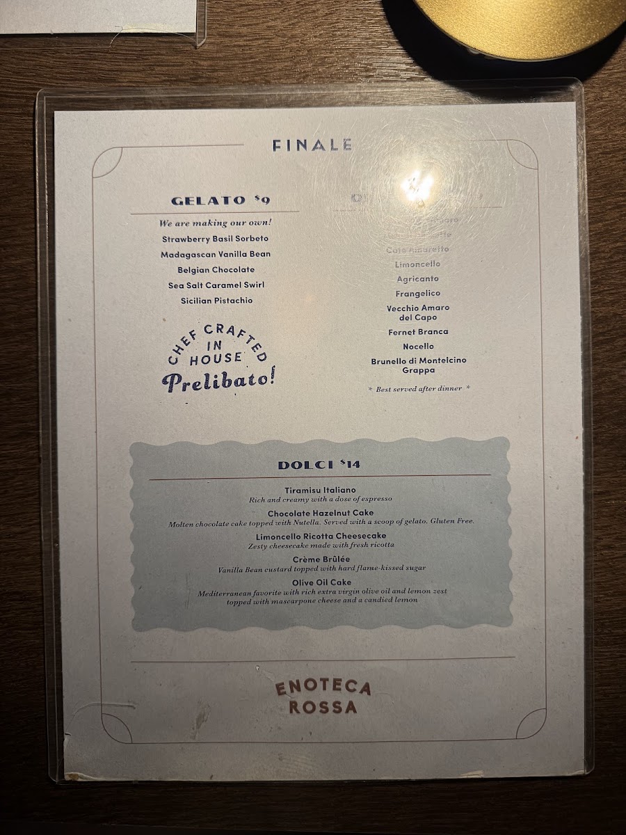 Molten chocolate cake topped with Nutella. Served with a scoop of gelato. Gluten Free.